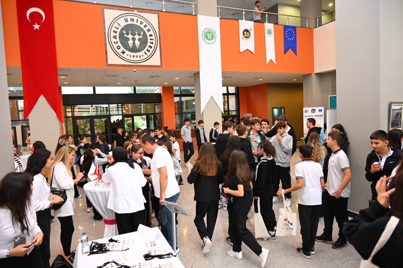 Kocaeli’deki çok sayıda lise ve ortaokul öğrencisinin katıldığı etkinliğe, Rektör Yardımcısı Prof. Dr. Elif Öğüt, Kocaeli İl Milli Eğitim Müdürü Ömer Akmanşen, Proje Koordinatörü Prof. Dr. Sevil Veli ile akademisyenler katılım gösterdi. Etkinliğin açılışında konuşan Kocaeli Üniversitesi Rektör Yardımcısı Prof. Dr. Elif Öğüt, “Bugün burada gerçekleşen etkinliğin yalnızca bir bilim şenliği değil, sürdürülebilir, bilinçli ve dirençli bir topluma giden yolda önemli bir adım olduğuna inanıyoruz. ‘Science for Stronger Societies – Science & Future’ başlıklı bu proje, Avrupa Birliği’nin Yeşil Mutabakat hedefleriyle uyumlu olarak iklim değişikliği, doğal afetlerle mücadele ve sürdürülebilir kalkınma gibi çok yönlü amaçlara hizmet ediyor” dedi.